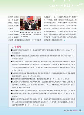 ●石化事業部副執行長一職由該事業部工業安全室主任黃建輝升任,自 104 年 10 月 1 日生效。